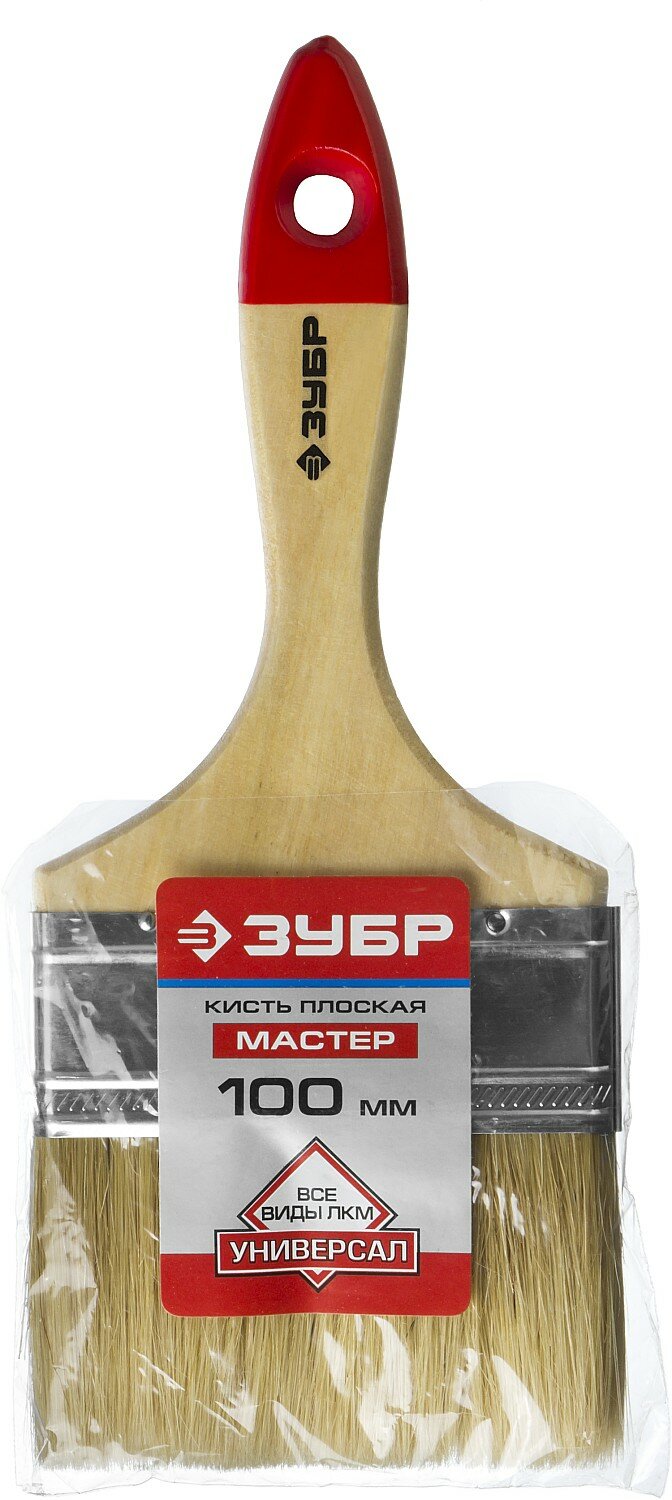 ЗУБР 4-01003-100 Кисть плоская ″универсал-мастер″, натуральная щетина, деревянная ручка, 100 мм
