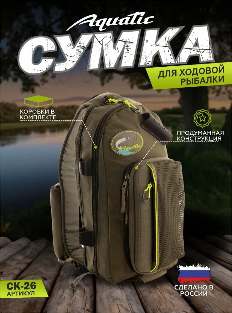 AQUATIC Сумка рыболовная с коробками fisherbox Aquatic СК-26, хаки