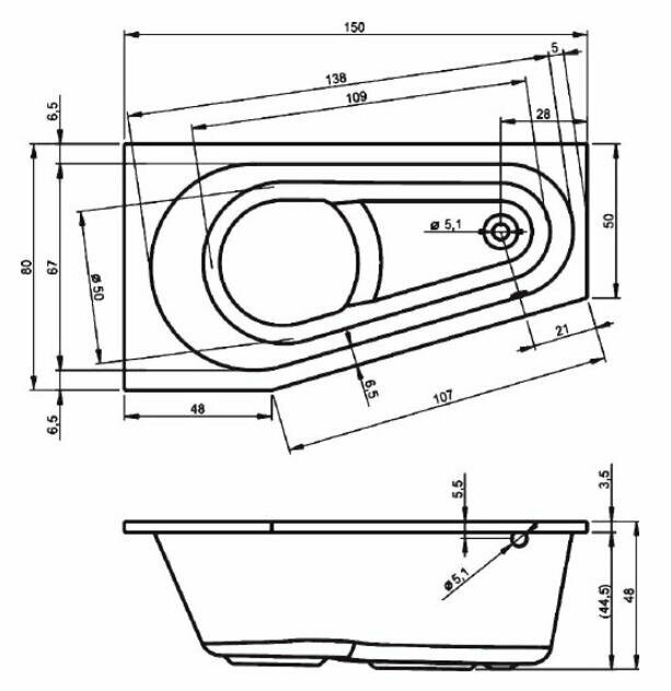 Акриловая ванна Riho Delta 150x80 без гидромассажа правая B066001005