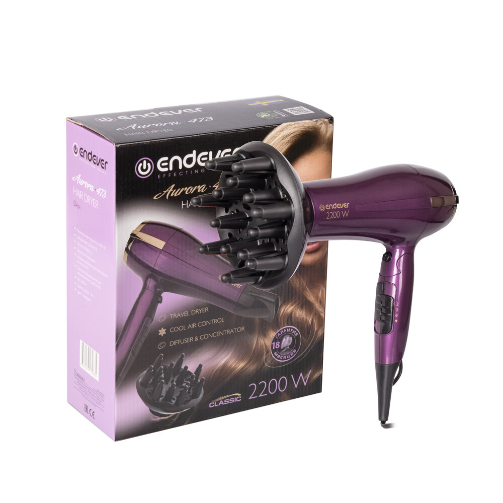 Фен и прибор для укладки Endever Aurora-473, сливовый