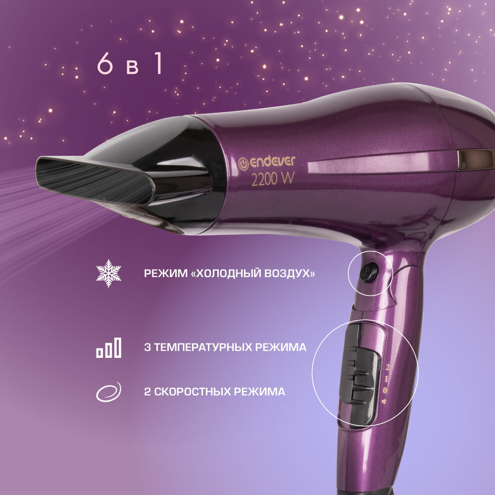 Фен Endever Aurora 473, 2200Вт, фиолетовый