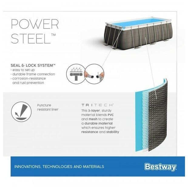 Купить Бассейн каркасный Bestway, 549х274х122 см, Power Steel Rectangular, 56998, фильтр-насос, лестница, тент, 14812 л, поплавок-дозатор