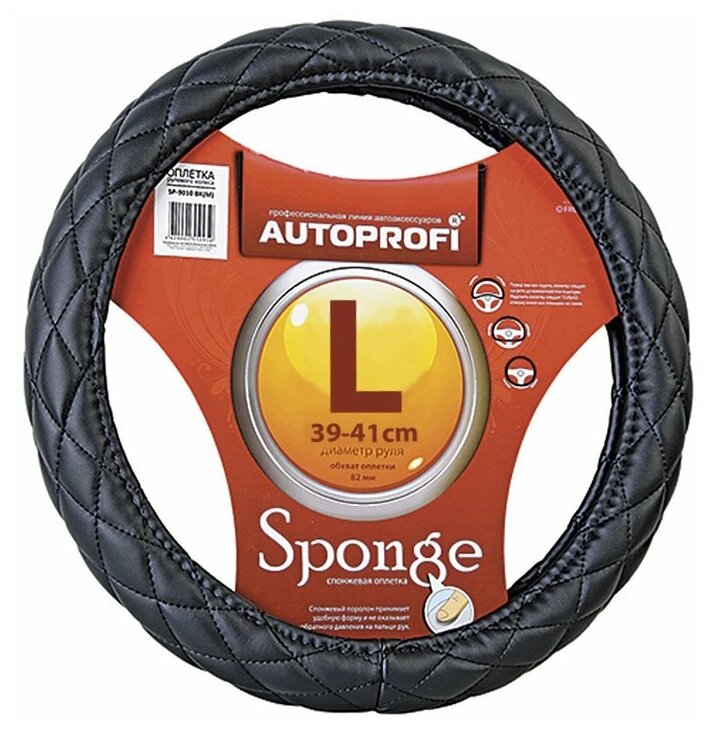 AUTOPROFI SP-9010 BK (M) оплетка руля мягкая экокожа, стёганая, наполнитель 1см. поролон, чёрный,
