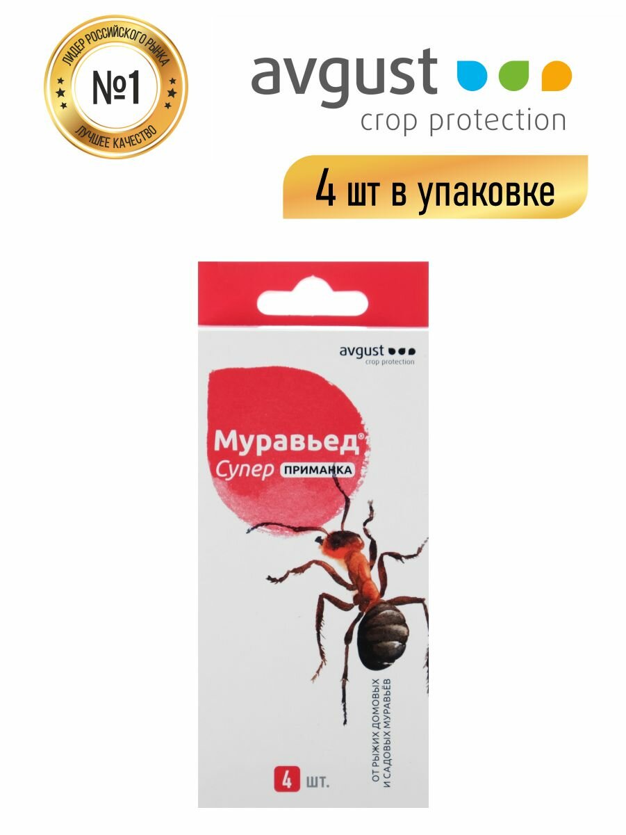 Приманка avgust Муравьед Супер от рыжих домовых и садовых муравьев, 6 г, 6 мл, 4 шт.