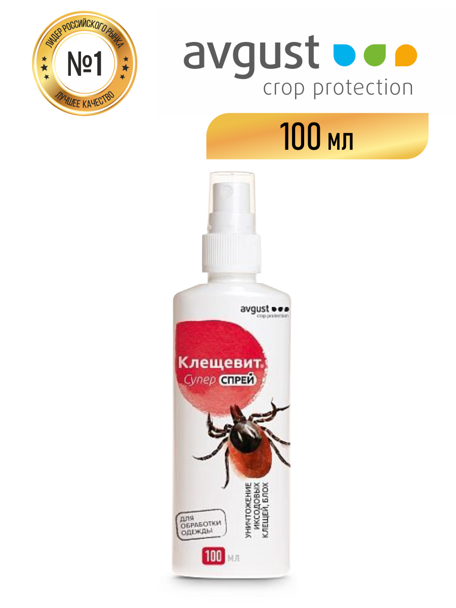 Спрей avgust Клещевит Супер для обработки одежды, 103 г, 100 мл, 15 ночей, белый