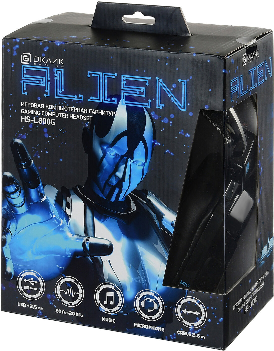 Гарнитура игровая Oklick HS-L800G ALIEN, для компьютера, мониторные, черный [1102310]