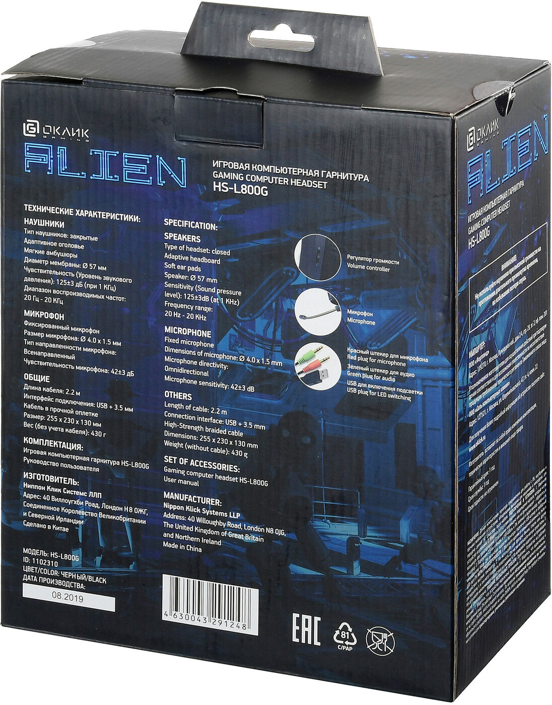 Купить Oklick гарнитура игровая Oklick HS-L800G ALIEN black (HS-L800G)