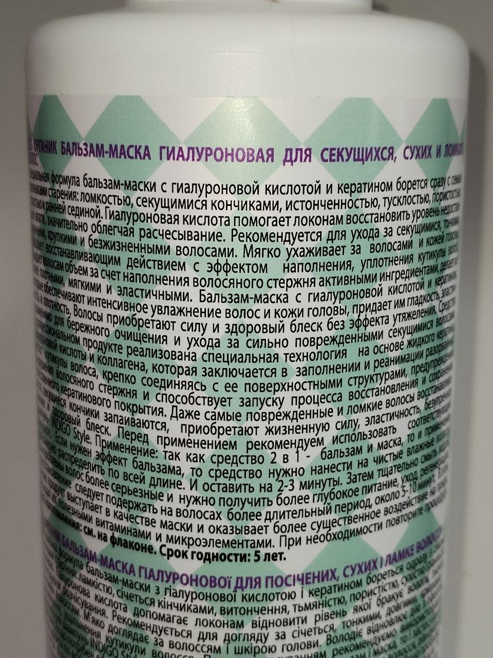 Indigo Style Органик бальзам-маска гиалуроновая без сульфатов и парабенов, 200 мл 2 шт