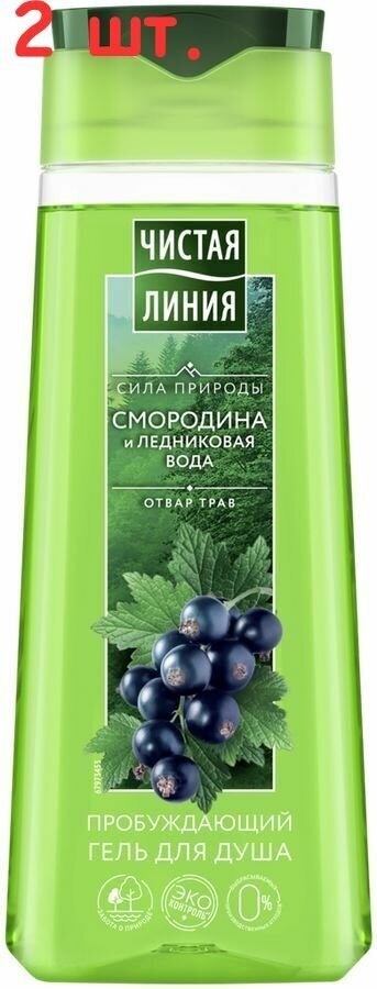 Гель для душа Чистая линия пробуждающий на 100% натуральной основе, смородина и ледниковая вода 250 мл ( 3 шт )
