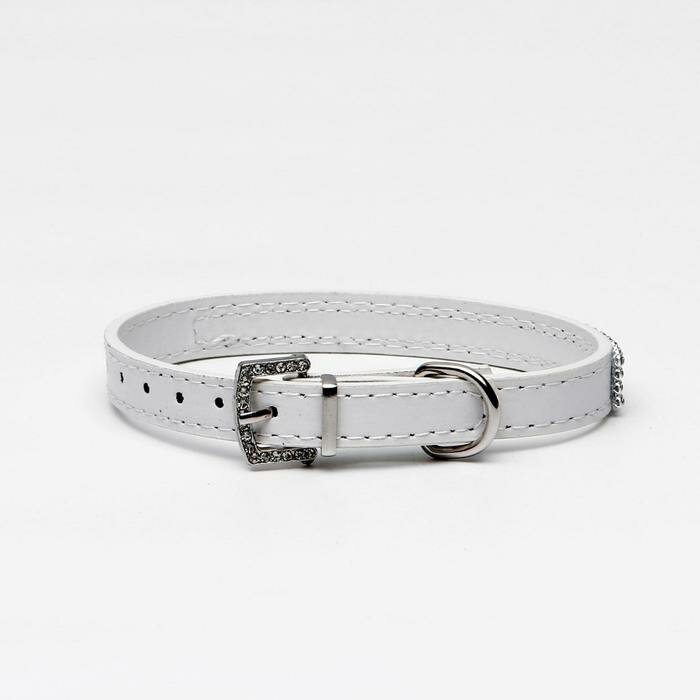 Пижон Ошейник со стразами в 4 ряда и стразы на пряжке, 40 х 1,5 см, белый