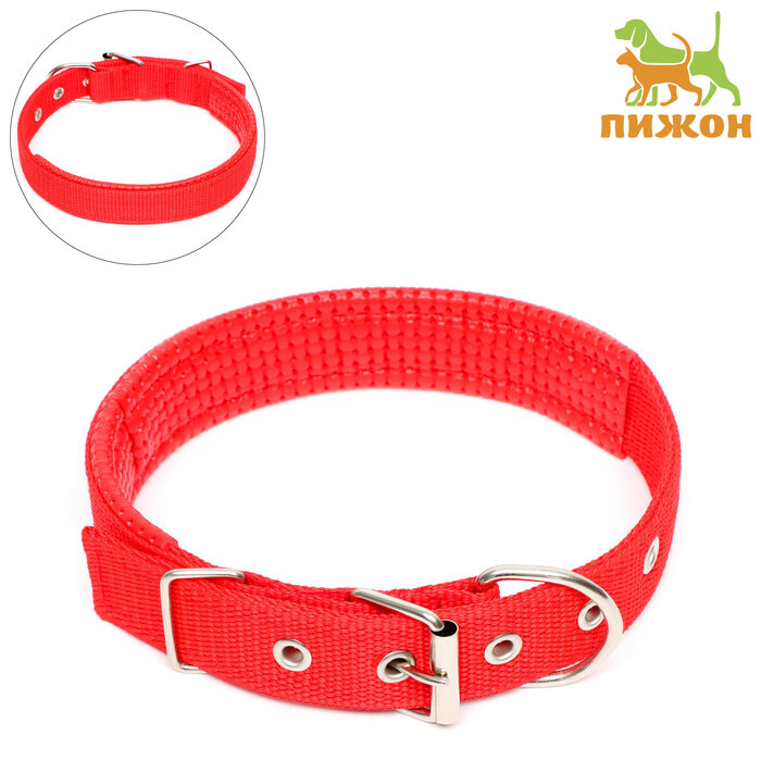 Пижон Ошейник "Комфорт" комбинированный (полиэстер, искусственная кожа), 58 х 3 см, красный