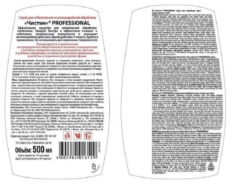Спрей для отбеливания Чистин Professional И Антимикробной Обработки 500 мл