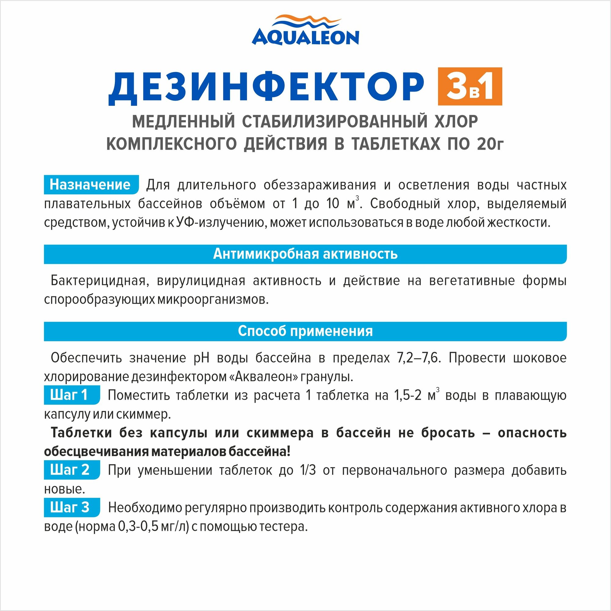 Дезинфектор Aqualeon медленный хлор 3 в 1 в таблетках по 200 гр., 0,6 кг