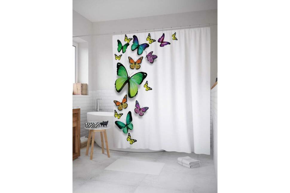 Купить Штора водоотталкивающая для ванной, занавеска в ванную комнату тканевая JoyArty "Вихрь бабочек", 180х200 см