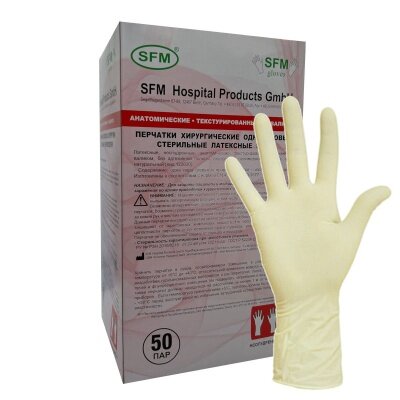 Перчатки медицинские СФМ Госпитал Продактс Перчатки хирург стерил латекс SFM неопудр текстур анатом 6