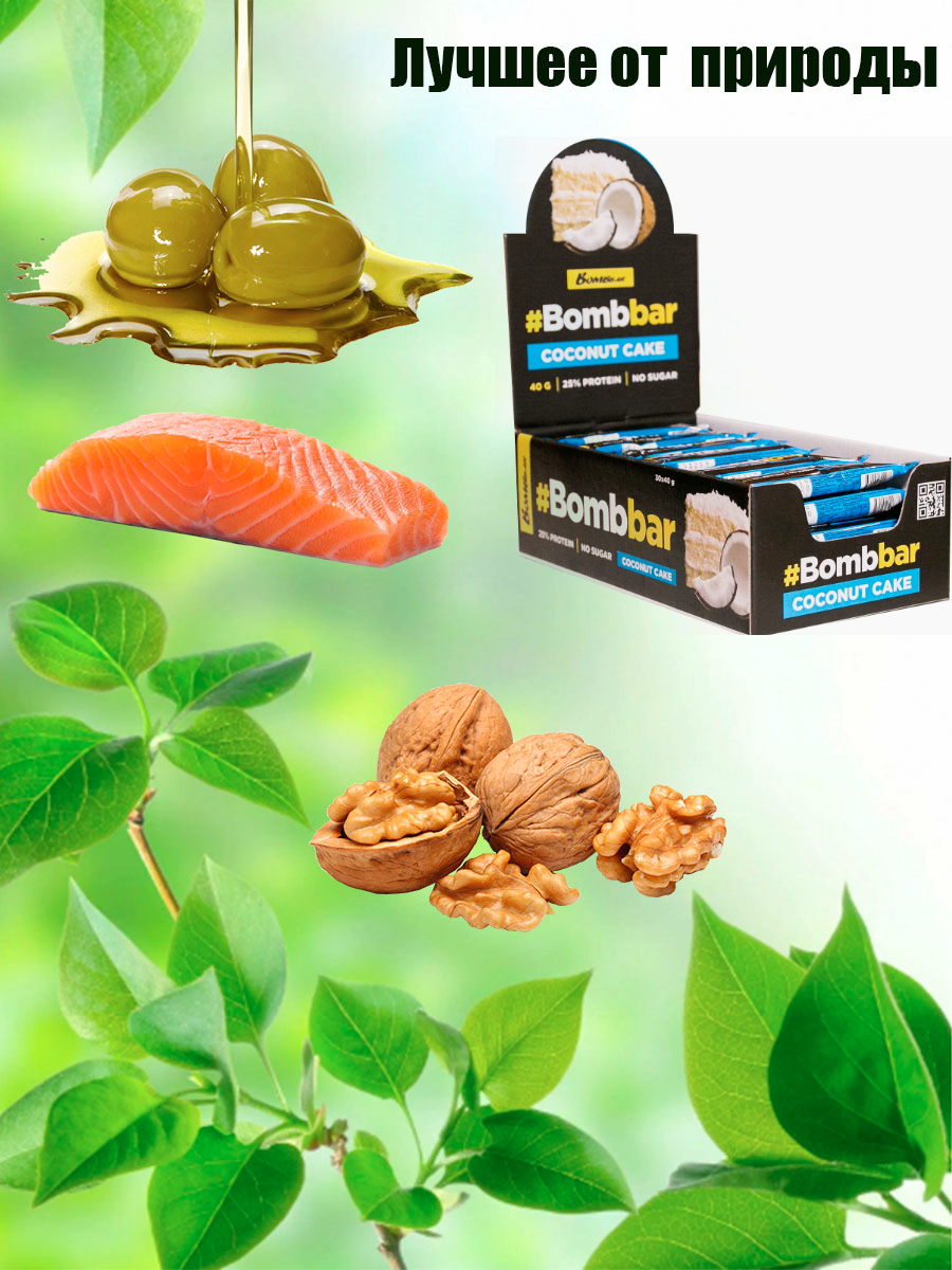 BombBar протеиновый батончик для спортсменов 60 г, 20шт (Кокос) без сахара