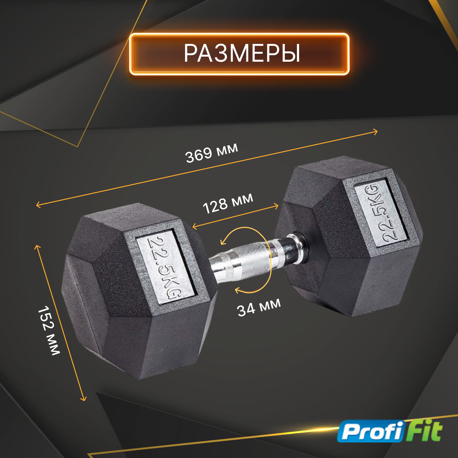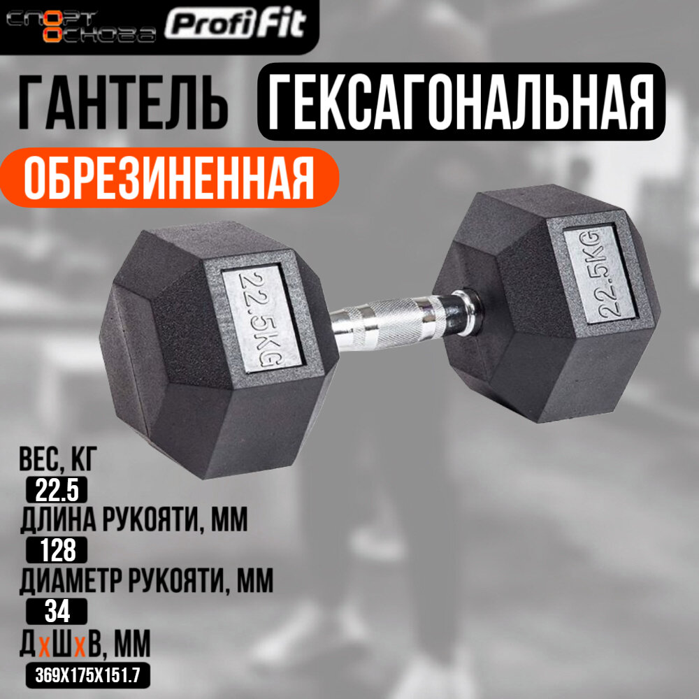 Купить Гантель гексагональная обрезиненная Profi-Fit, 22,5кг