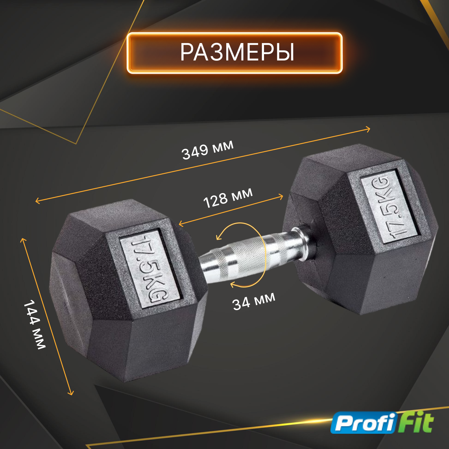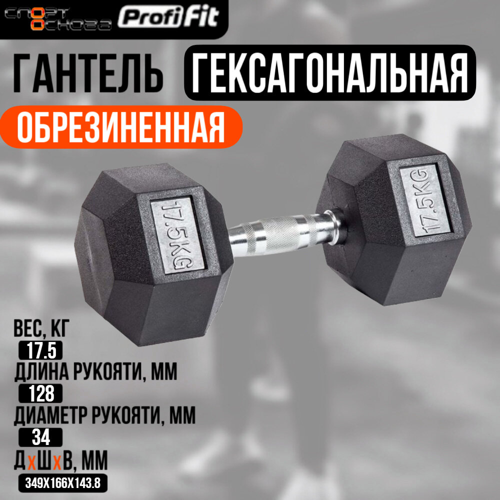 Купить Гантель гексагональная обрезиненная Profi-Fit, 17,5кг