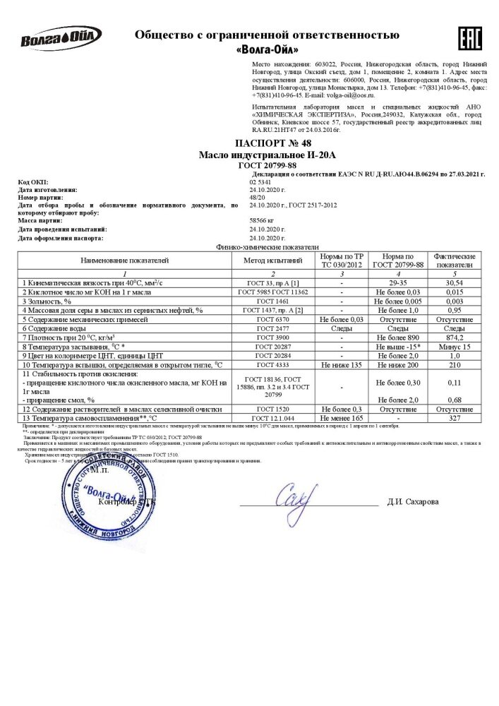 Масло Индустриальное И-20 А 20л Волга-Ойл