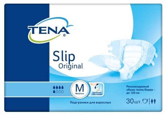 Tena Подгузники для взрослых Tena Slip Original Medium, объем талии 80-120 см, 30 шт.