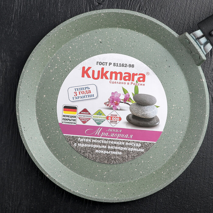 KUKMARA Сковорода блинная, d=22 см, пластиковая ручка, антипригарное покрытие, цвет тёмный мрамор
