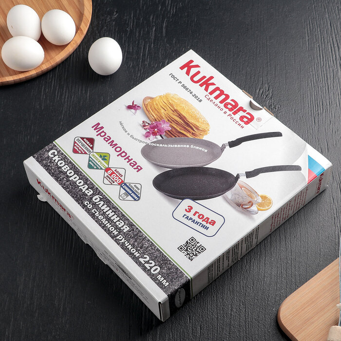 Сковорода блинная Kukmara Мраморная 220а, съемная ручка, 22 см