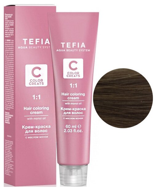 TEFIA ABS Крем-краска для волос с маслом монои, 60 мл Брюнет шоколад 4.8
