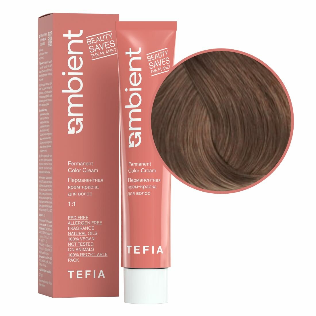 TEFIA Ambient 8.00 Перманентная крем-краска для волос / Светлый блондин интенсивный натуральный, 60 мл