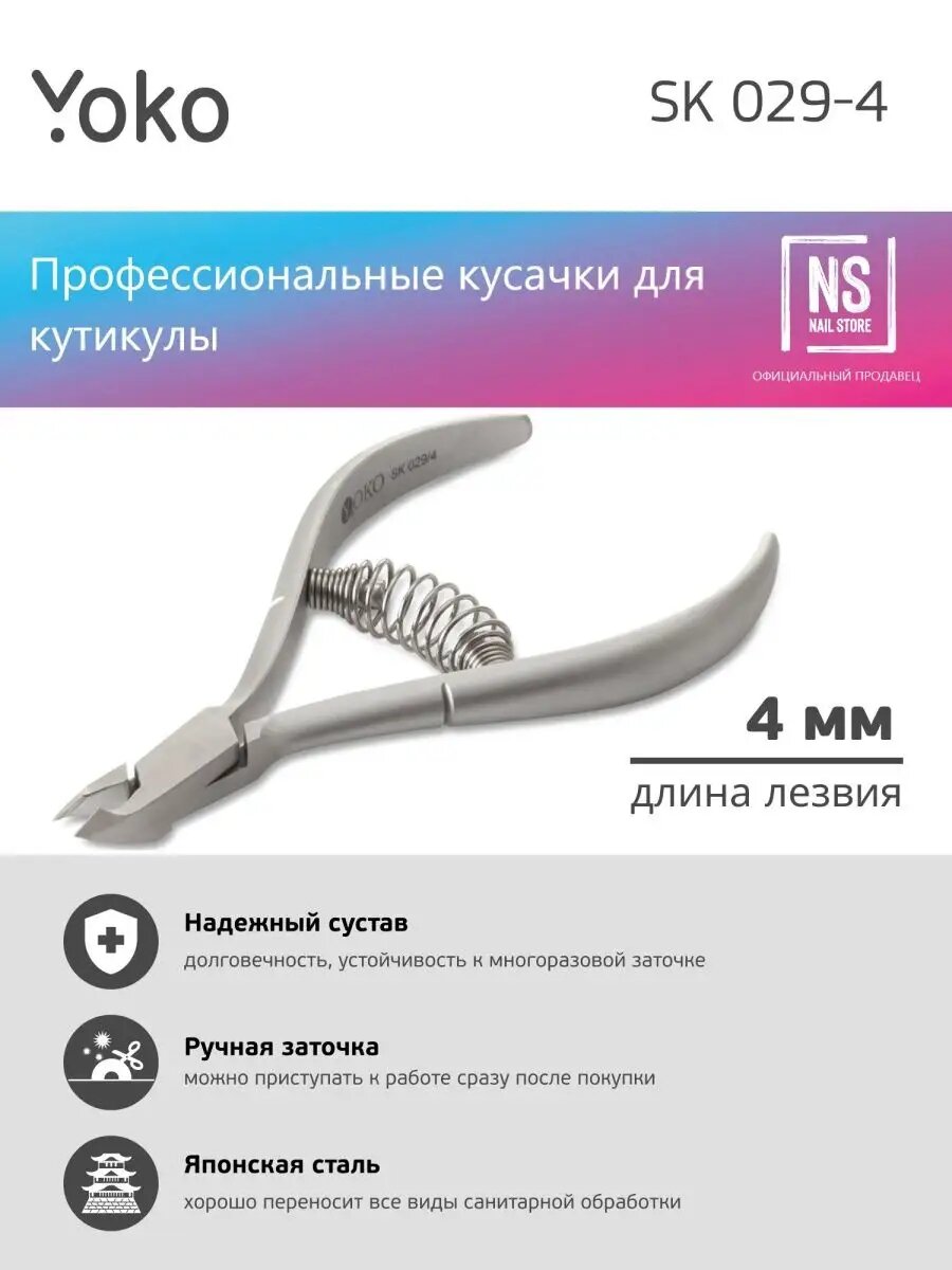 Маникюрные кусачки YOKO SK029/4 для кутикулы спиральная пружина, 4 мм