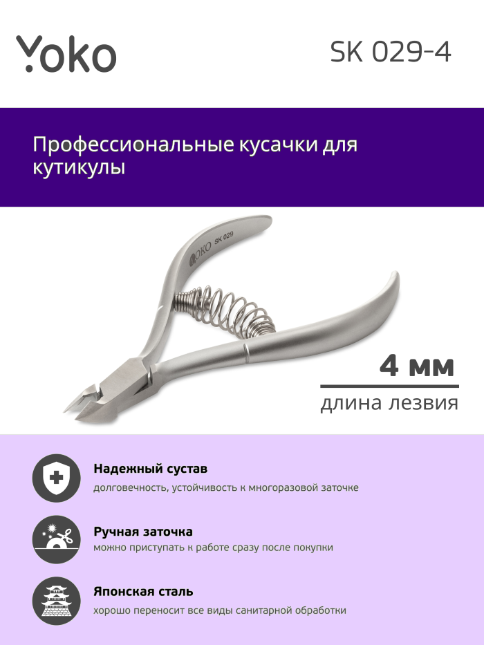 Yoko, Кусачки для кутикулы, SK029/4, 4 мм