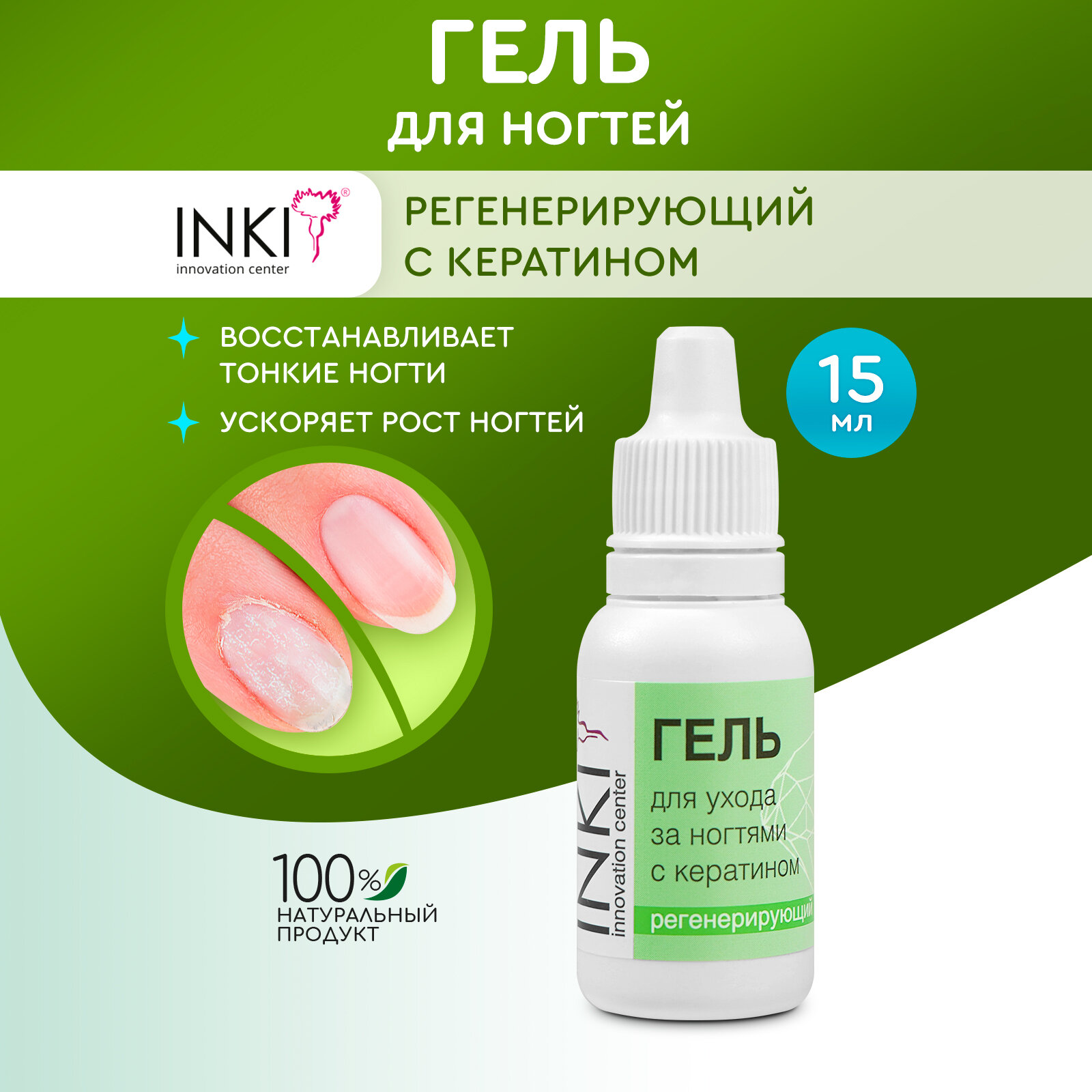 Гель для ухода за ногтями с кератином регенерирующий INKI 15 мл