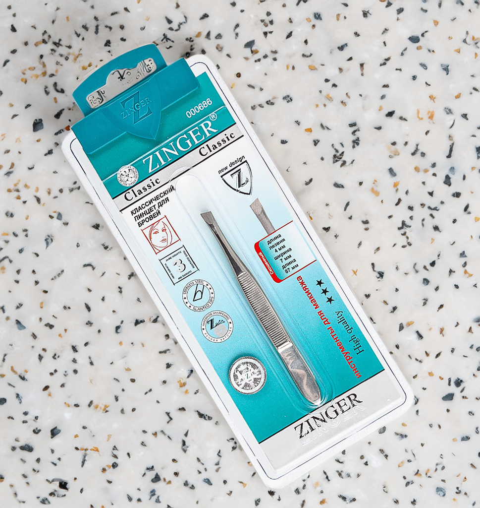 ZINGER Пинцет рифленый скошенный для бровей B-158 (akc-116), серебристый интересное: