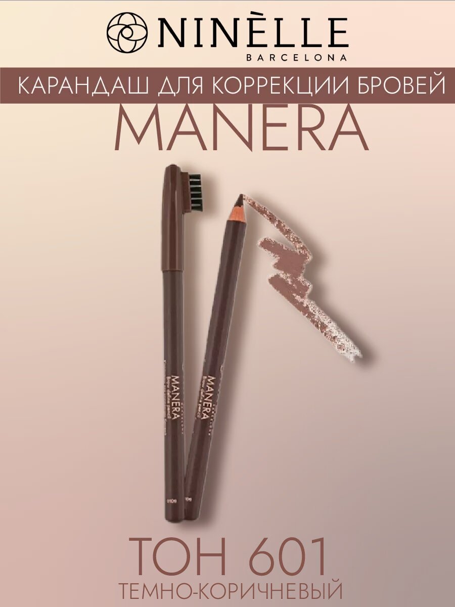 Ninelle / Нинель Карандаш для бровей Manera 601 для любого типа кожи с 18 лет темно-коричневый из воска 1.79г / декоративная косметика