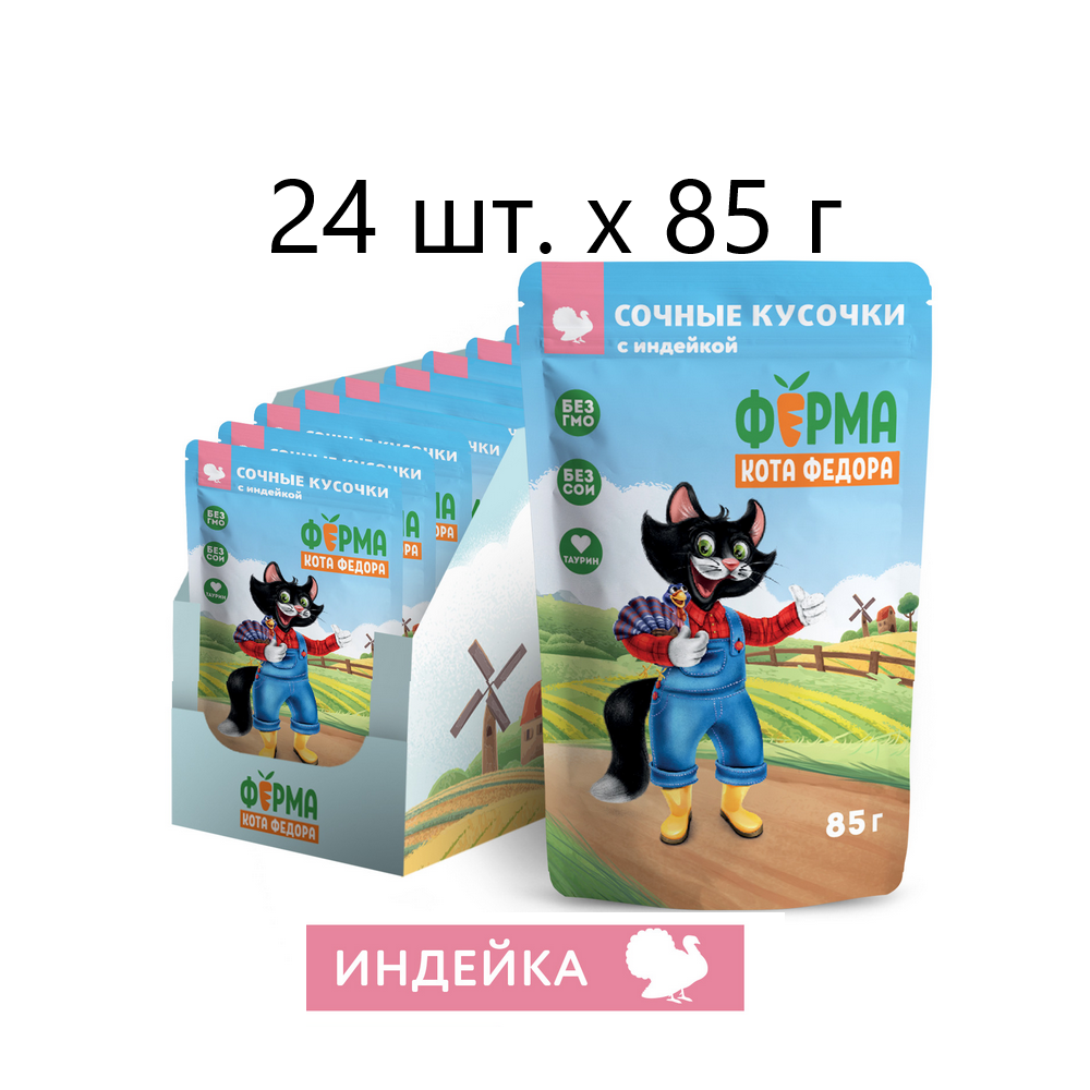 Ферма кота фёдора для взрослых кошек сочные кусочки в соусе с индейкой пауч 85 гр NEW 85 гр х 24 шт