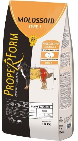 Сухой корм Proper Form Molossoid Type 1, для щенков крупных и гигантских пород с уткой, 18кг