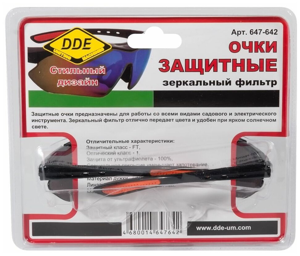 Очки защитные DDE тёмные c зеркальным светофильтром