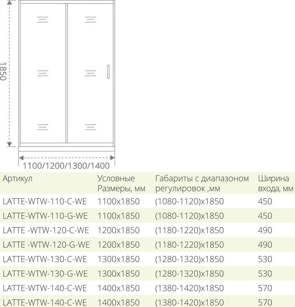 Душевая дверь в нишу LATTE WTW 120-С-WE раздвижная, стекло прозрачное 5мм