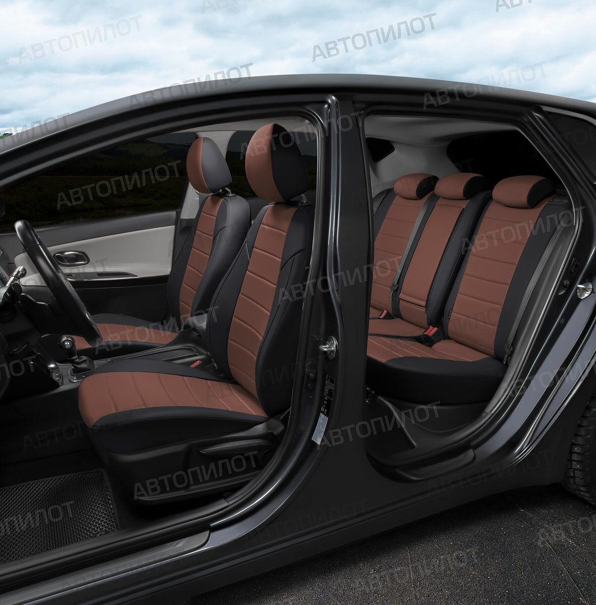 Купить Комплект чехлов Автопилот Экокожа Mazda 3 Sd (BK) c 04-13г. (Hb с 04-09г.) Черный + Темно-коричневый