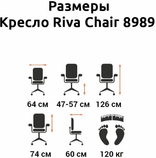 Кресло компьютерное Riva Chair 8989, Цвет обивки: черный, Цвет корпуса: серый