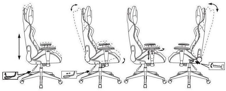 - В комплекте идут подушка под шею и поясницу. Опять же, очень удобно; - Крепкий механизм качания, не хлипкий: нет ощущения, что откинувшись назад упадёшь; - Ручка регуляции наклона спинки. Единственное, очень близко к корпусу, трудно схватиться за неё. Но про это забываешь через пару дней — попросту привыкаешь; - Очень достойного качества основание-пятилучие: ощущается крепким; - Хороший газлифт, плавный, без резких подёргиваний при регулировке высоты посадки; - Обивка хорошая. Не вызывает дискомфорта. Про удобство сидения с малым количеством одежды на теле сказать не могу, так как ещё не пришлось, но предполагаю, что норм; - Подлокотники хорошие, достаточно упругие, не твёрдые. Регулируются по высоте, а также поворачиваются в трёх направлениях расположения рук: влево на 45, прямо и вправо на 45. |