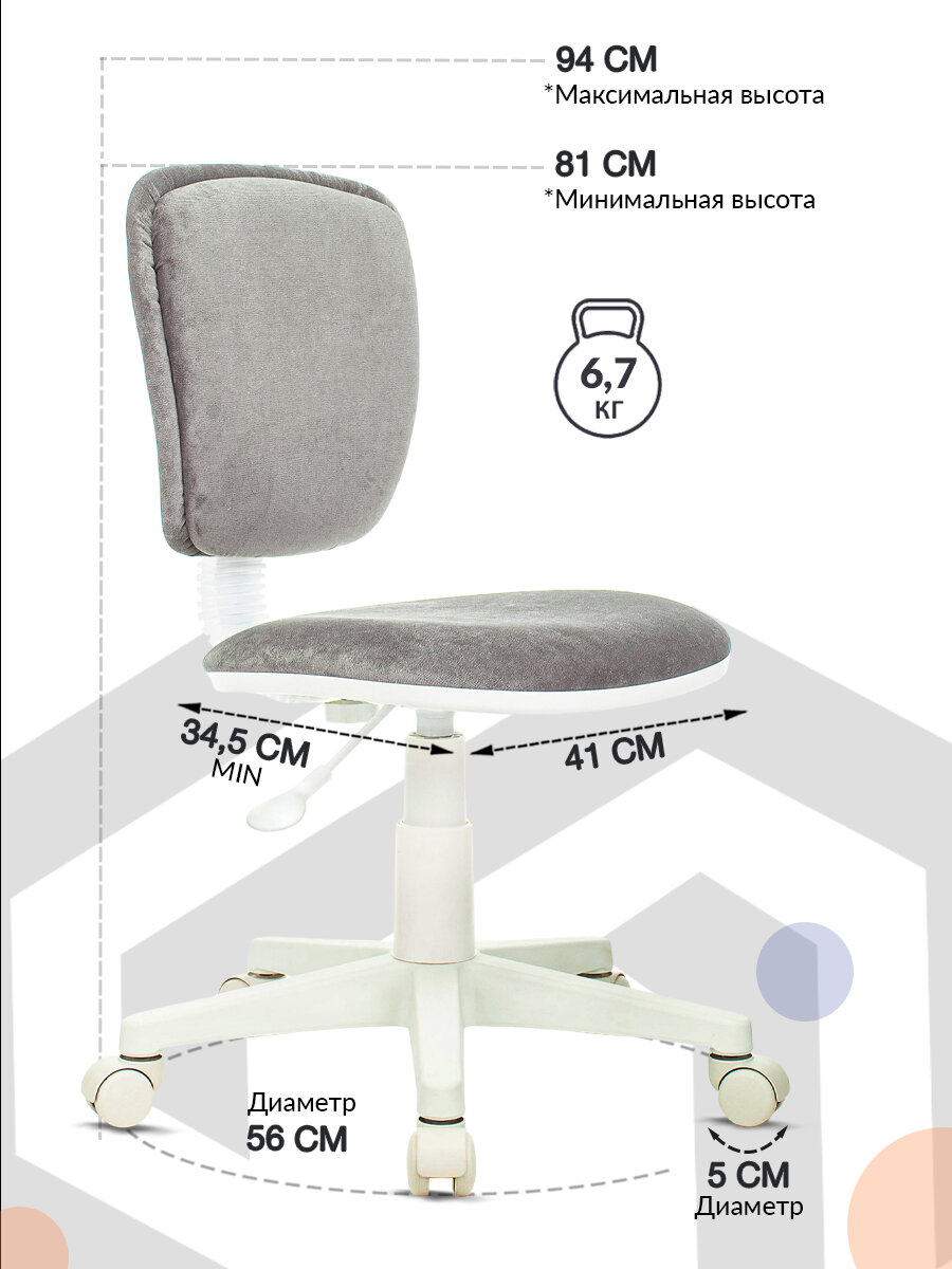 Кресло детское Бюрократ CH-W204NX/LT19 серый/белый, ткань микровельвет, без подлокотников