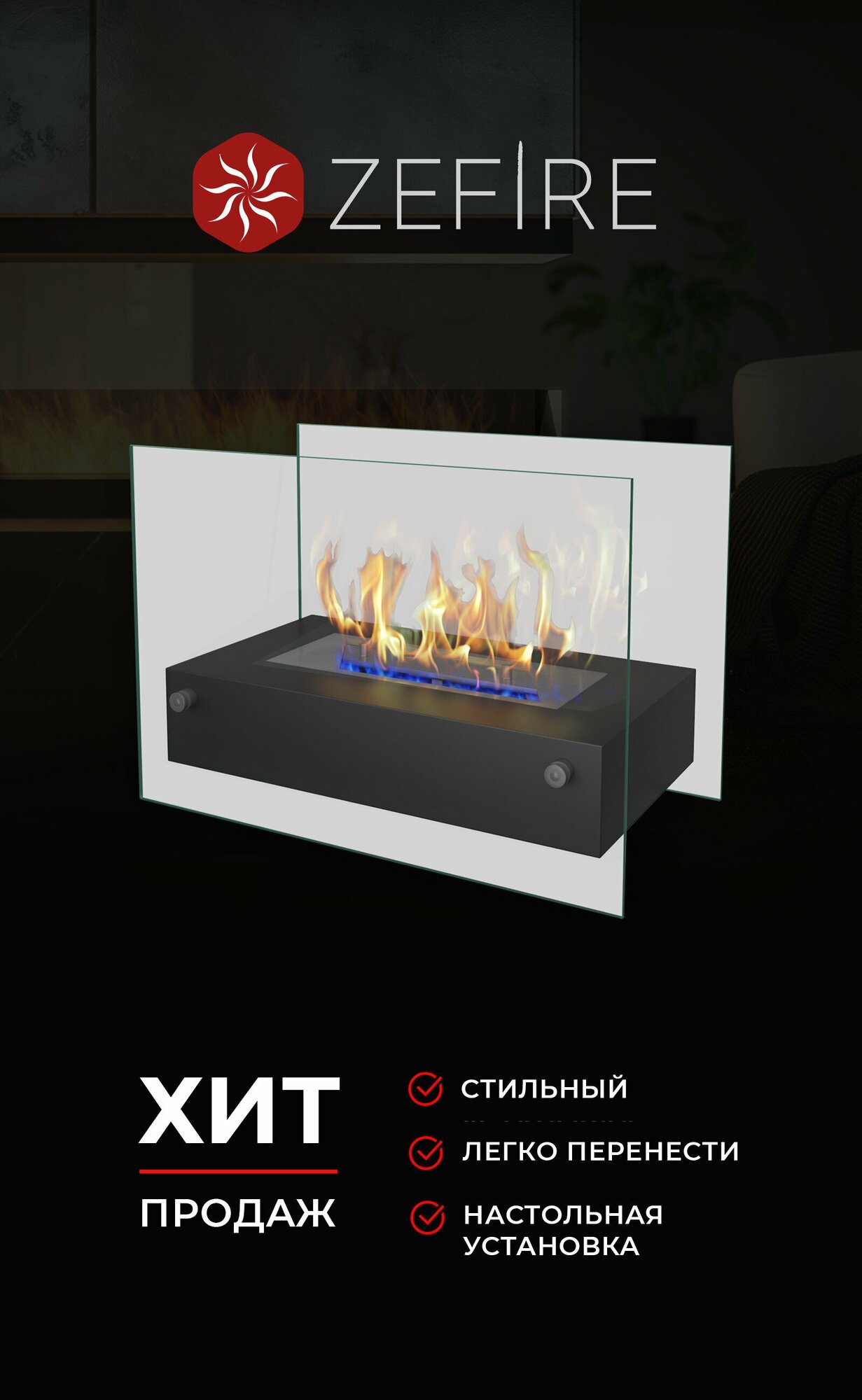 ZeFire Биокамин настольный Iceberg для дома и квартиры