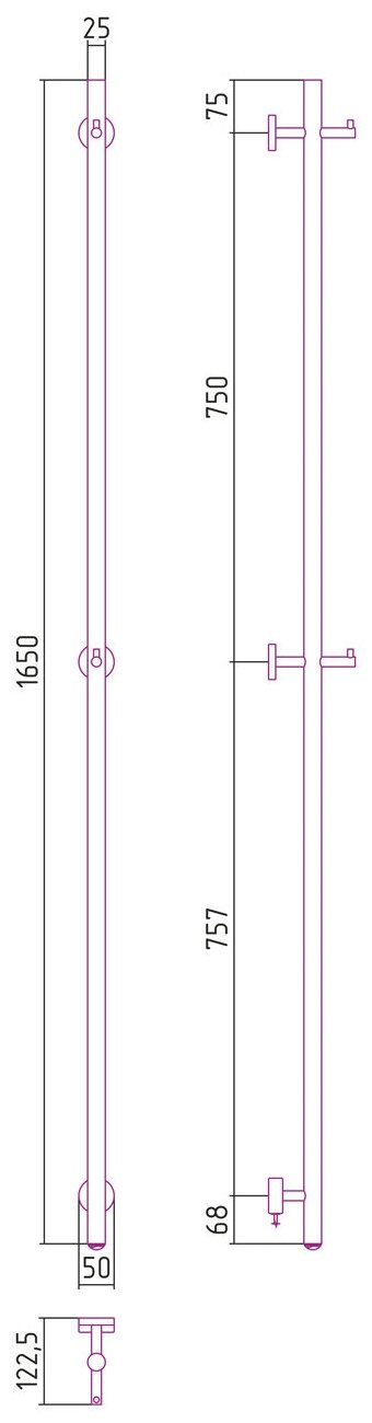 Полотенцесушитель электрический вертикальный Сунержа Аскет 1650х50 мм