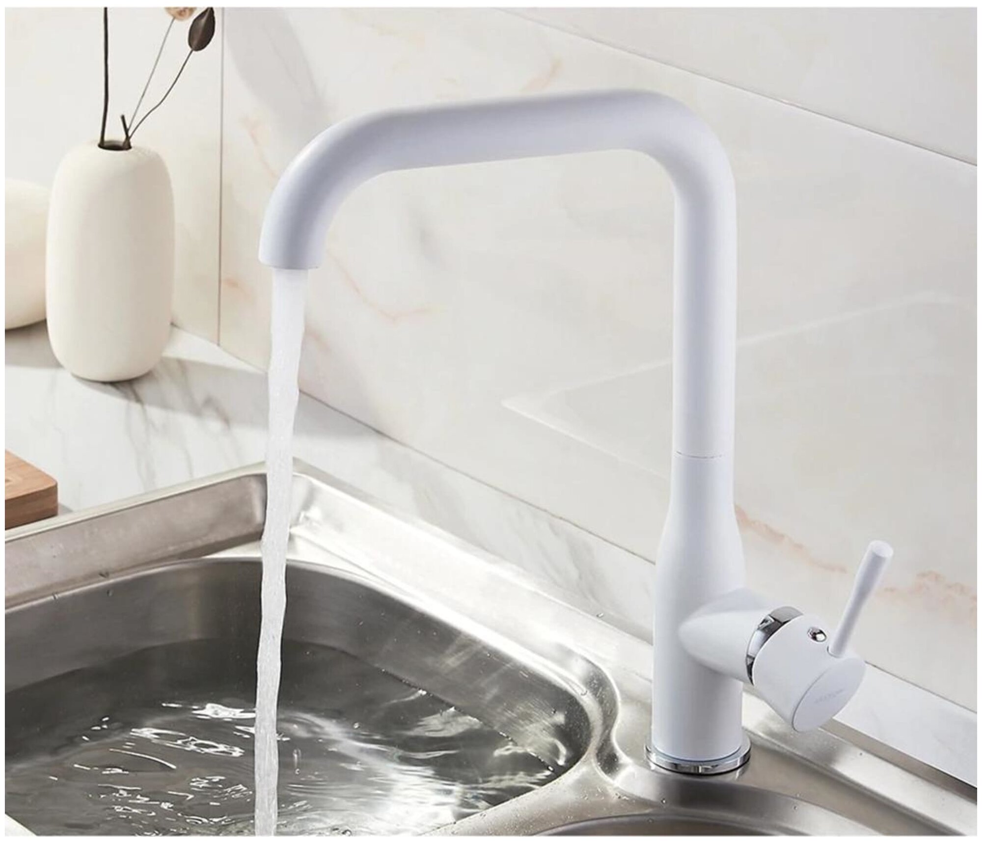 Смеситель Ledeme L4698W для кухонной мойки белый матовый