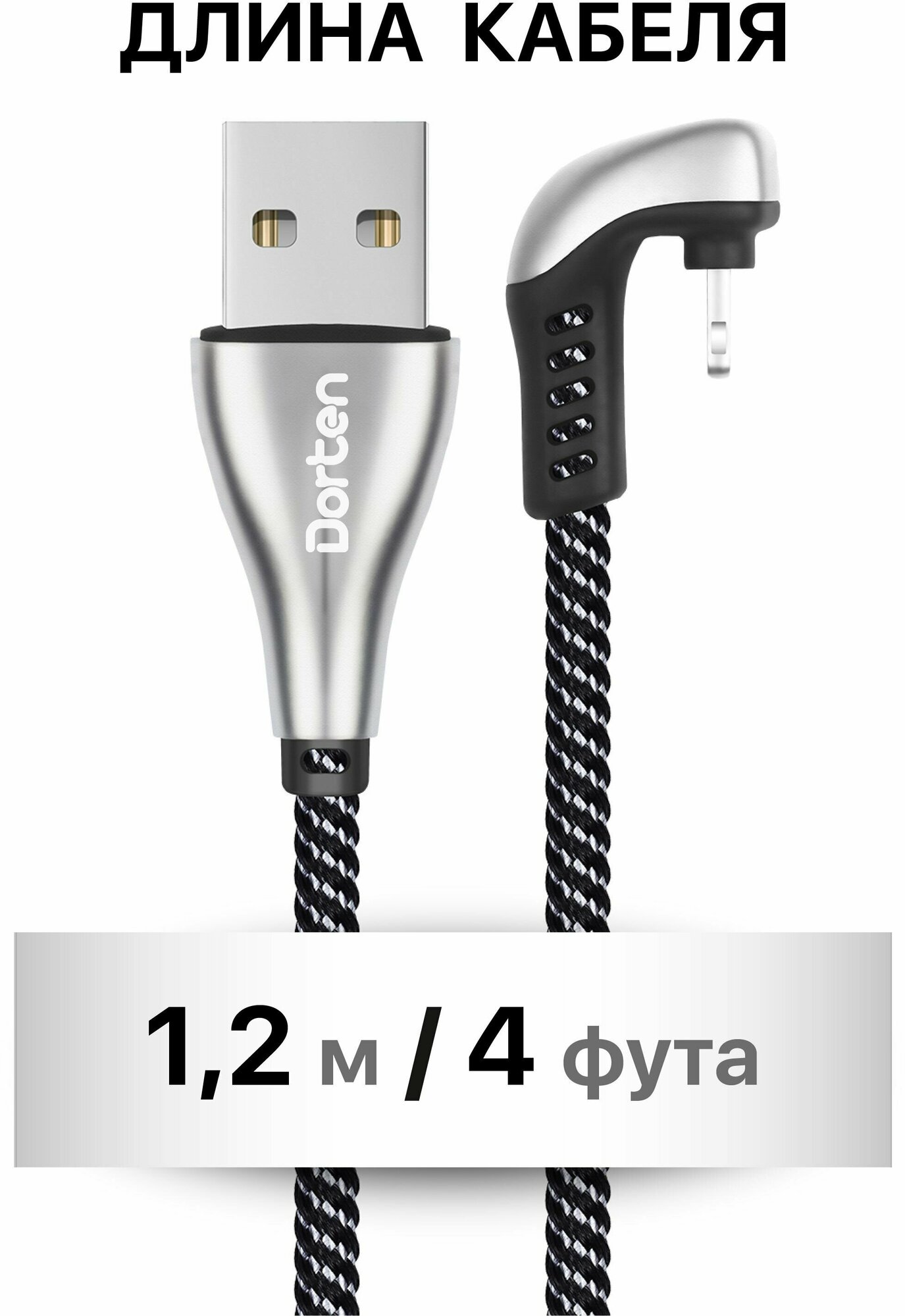 Кабель Dorten Lighting to USB cable: Angled Series 1.2 meter - Silver/Cеребряный интересное: