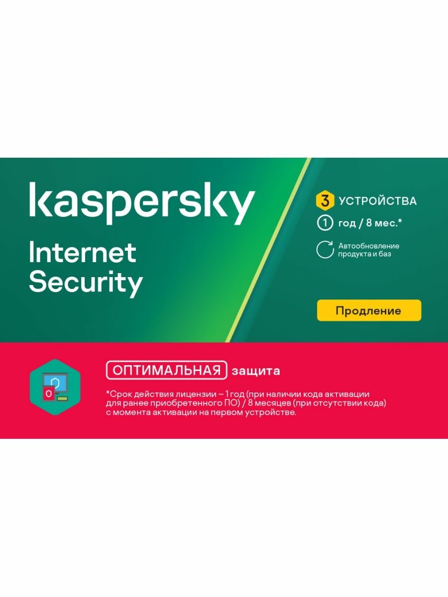 Программное обеспечение: Kaspersky Internet Security Russian Edition. 2 ПК 1 год Продление лицензии, карта (KL1941ROBFR/KL1939ROBFR)