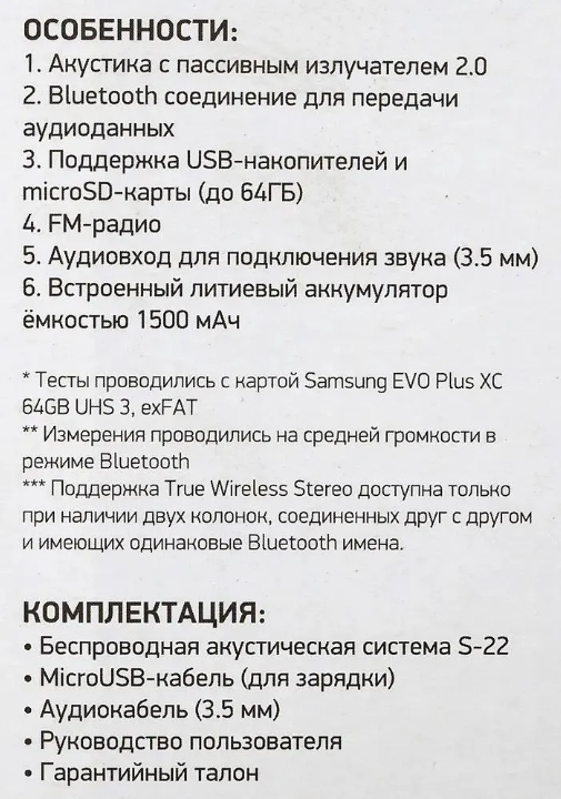 Портативная акустика DIGMA S-22