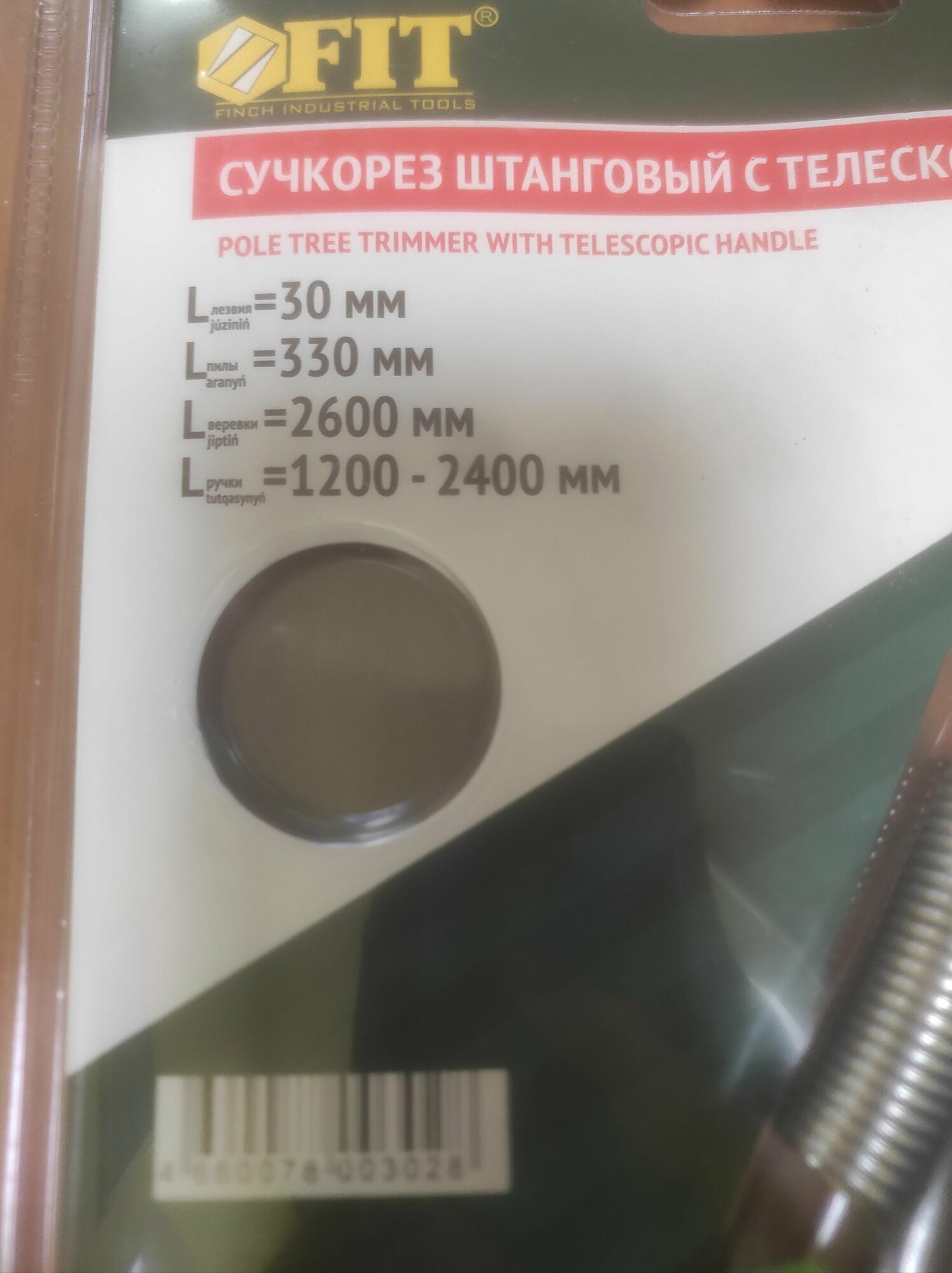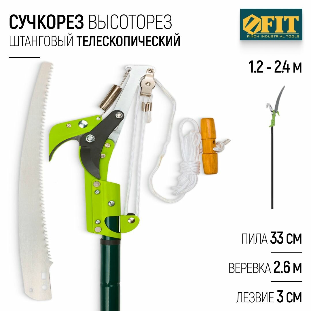 Сучкорез штанговый, лезвие 30 мм + пила 330 мм с телескопической стальной ручкой 1200-2400 мм Fit