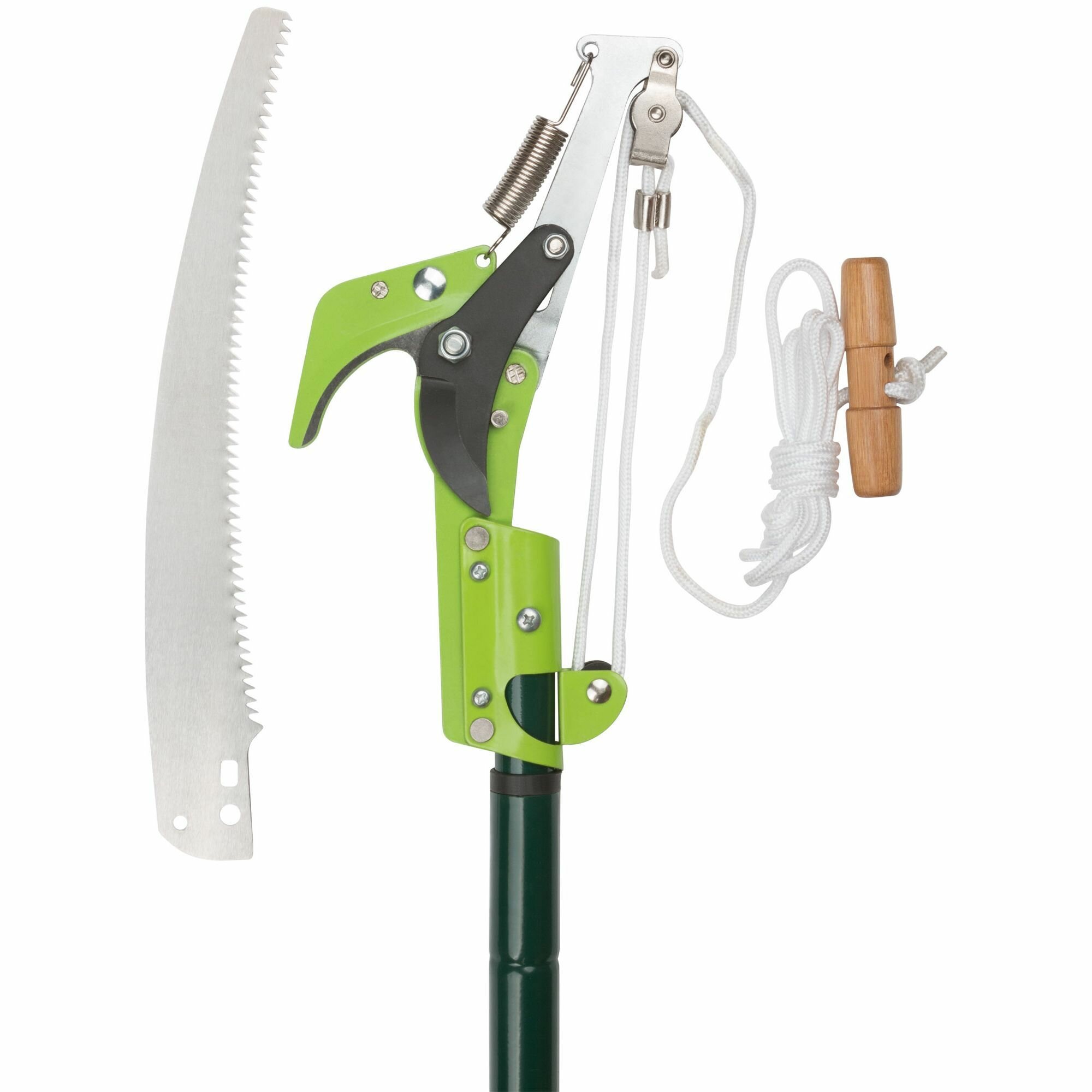 | Плюсы: | С его помощью можно качественно проредить ветки кроны средне-высоких садовых деревьев. Раздвижная, тяжелая, длинная штанга. Острый нож для тонких сучьев и веток. |