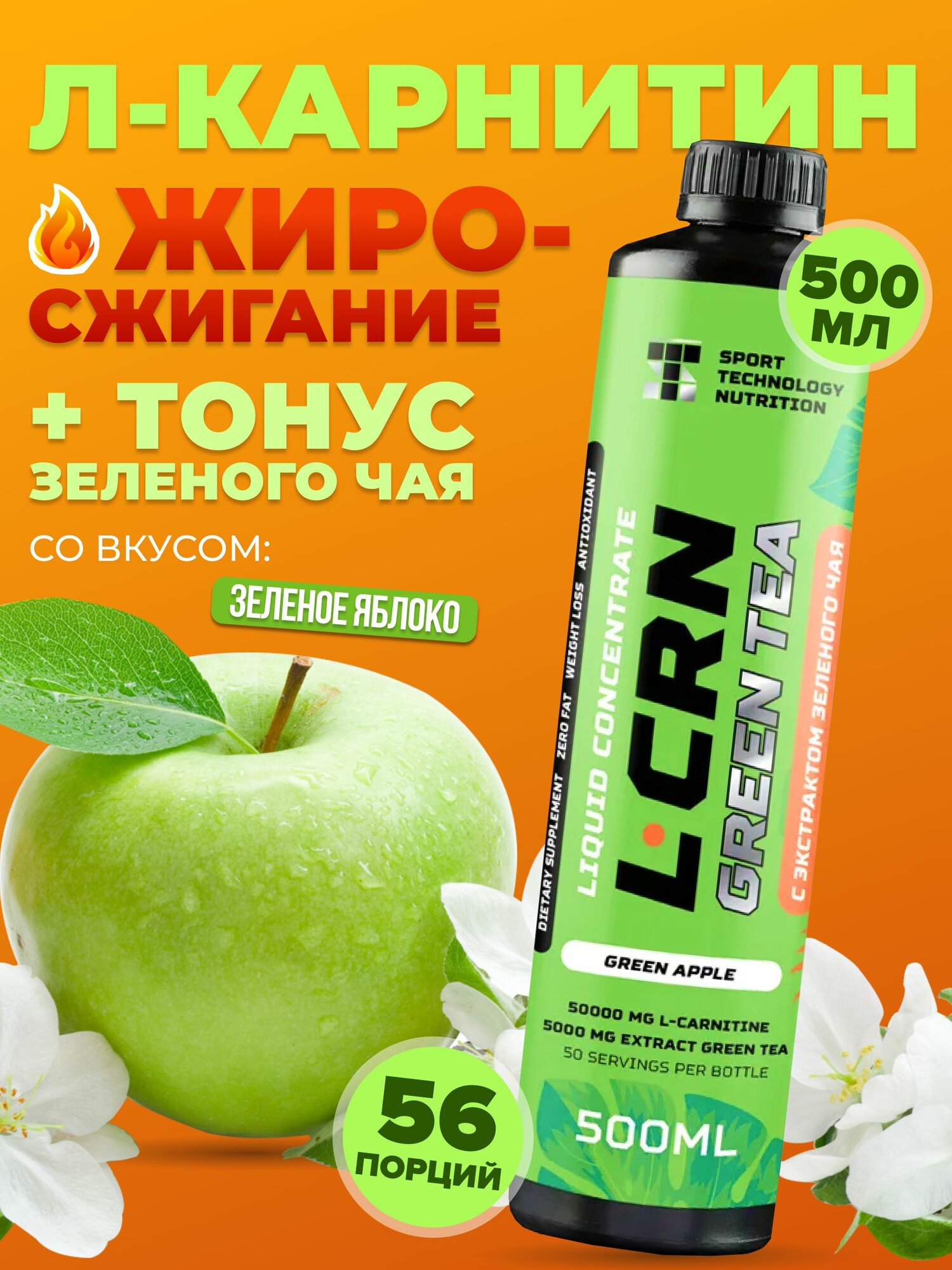 L-Carnitine 500 мл, Карнитин 900 + Зеленый чай (концентрат), зеленое яблоко, напиток для коррекции веса, жиросжигатель для похудения